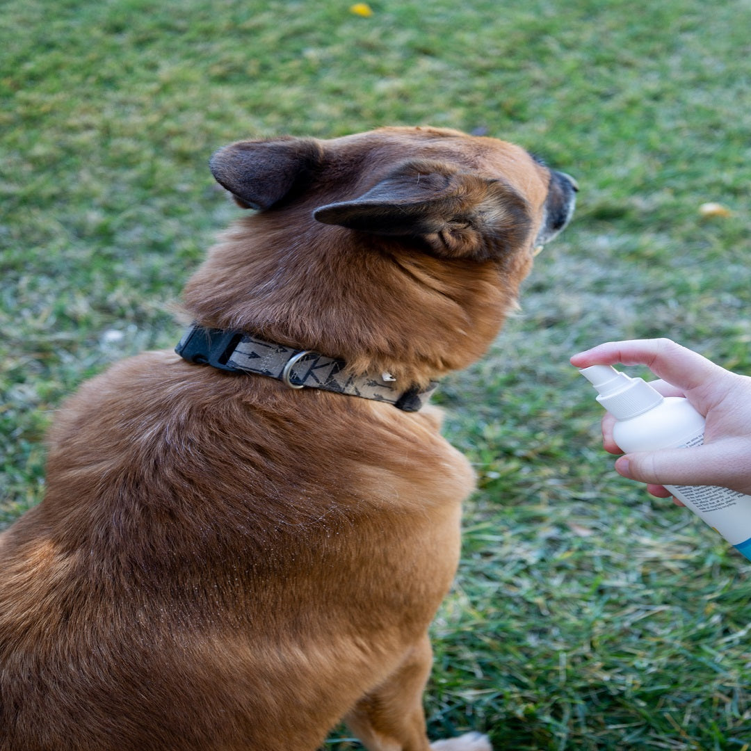 - Spray the body spray onto your hands or directly onto your dog's coat, starting from the back and working your way to the front.